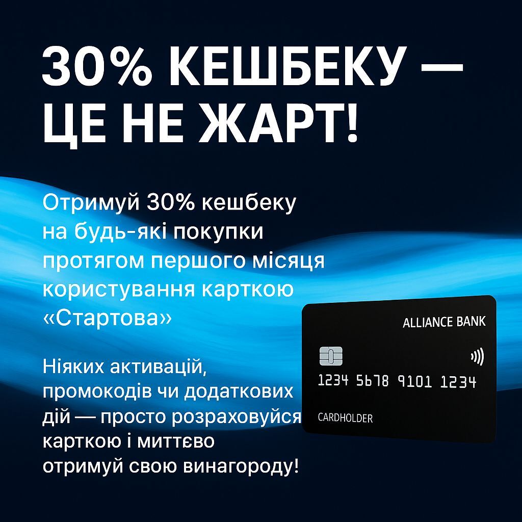 Отримуй 30% кешбеку на будь-які покупки протягом першого місяця та 5% кешбеку за комуналку.